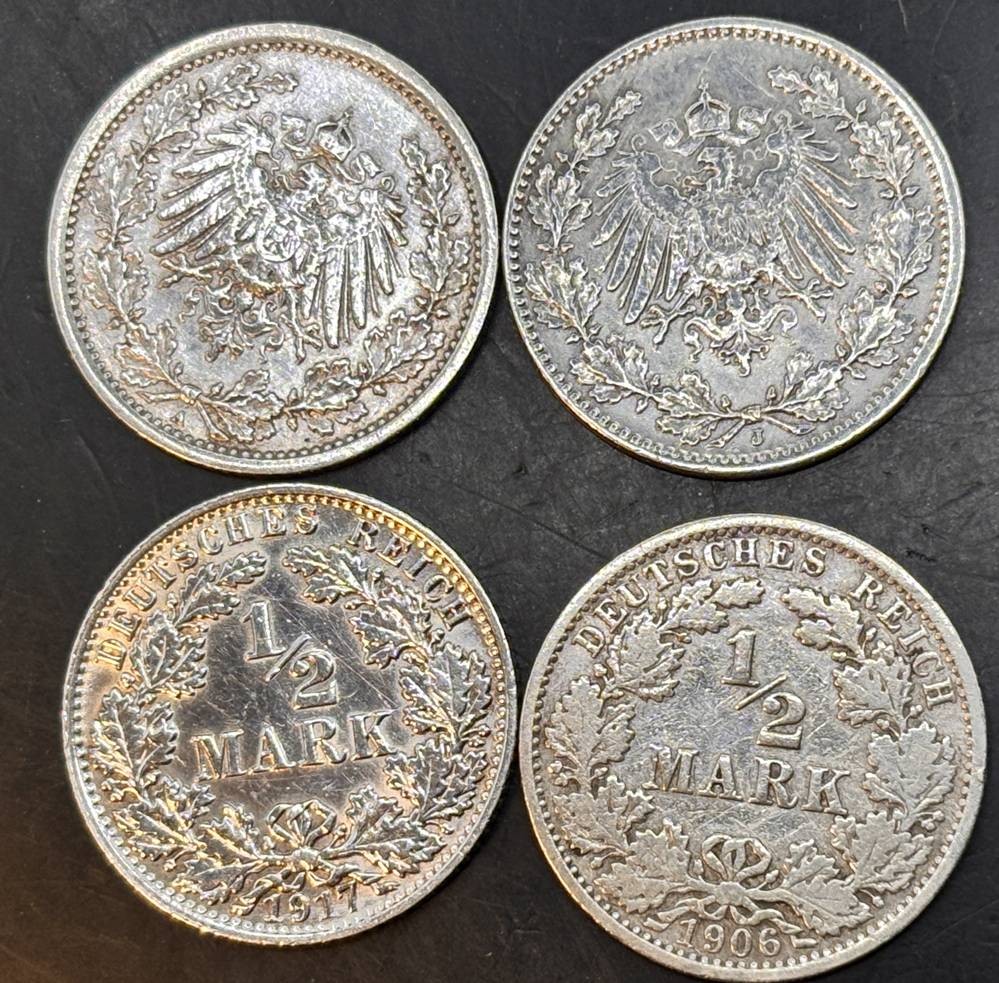 4x 1/2 Mark, Kaiserreich 1906-1917, Silber [1]
