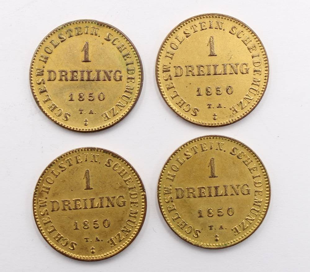 4x 1 Dreiling-Scheidemünze 1850, Schleswig Holstein (87) [1]