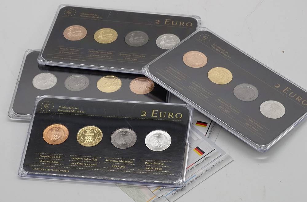 4x 2 Euro Edelmetall Sets, Limitierte Auflage, Veredelungen