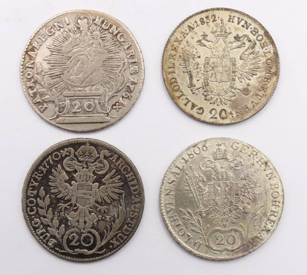 4x 20 Kreutzer, Österreich, 2x Maria Theresia 1761/1770, 1x Franz I, 1803, 1x Franz II 1832 [1]