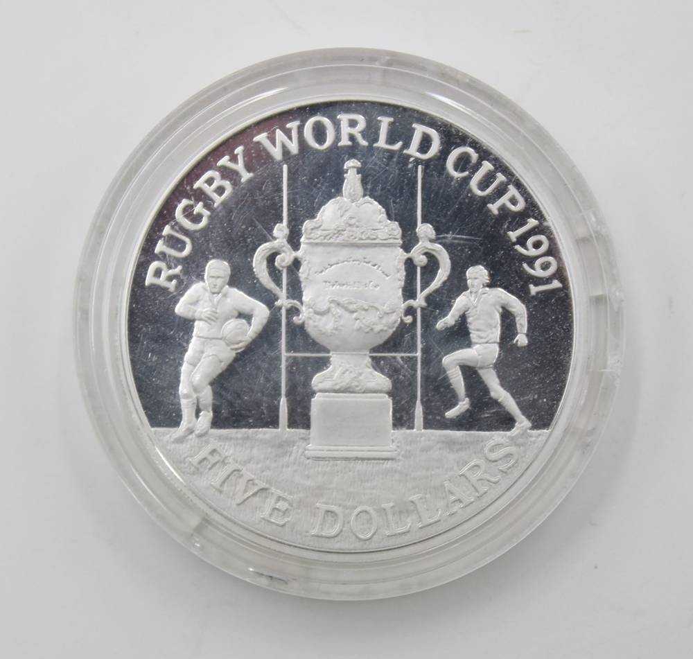 5 Dollar, Neuseeland, 1991, Rugby Worldcup, Silber, ca. 28,2gr., D-mit Kapsel 3,9cm [1]