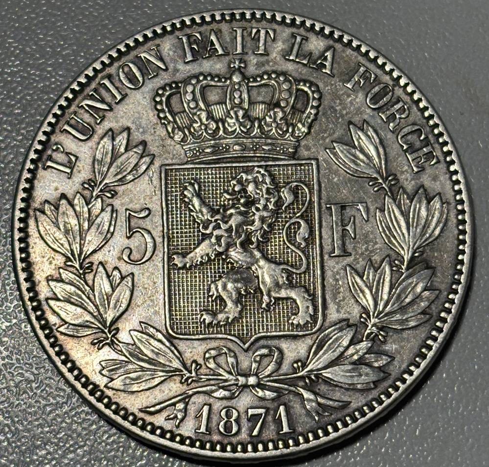 5 Franc Belgien, 1871, Leopold II, Silber, 24,9 gr [1]