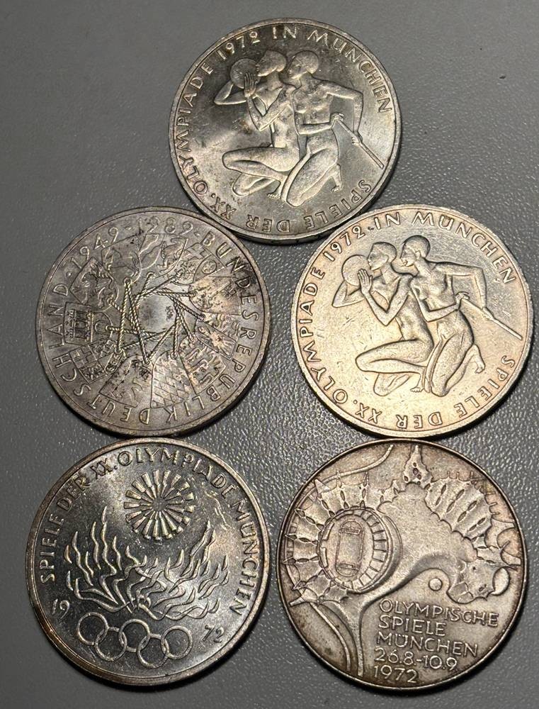 5x 10 Mark Sondermünzen, Silber