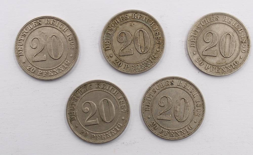 5x 20 Pfennig, Deutsches Reich um 1890 (38) [1]
