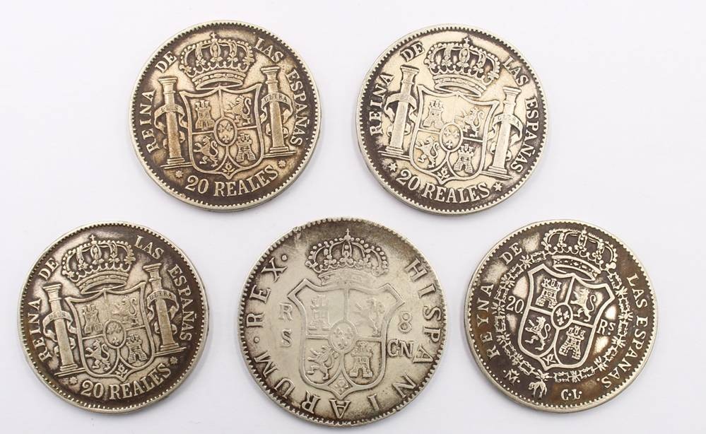 5x 20 Reales, Spanien, von 1806-1858, Silber, 130,2 gr. [1]