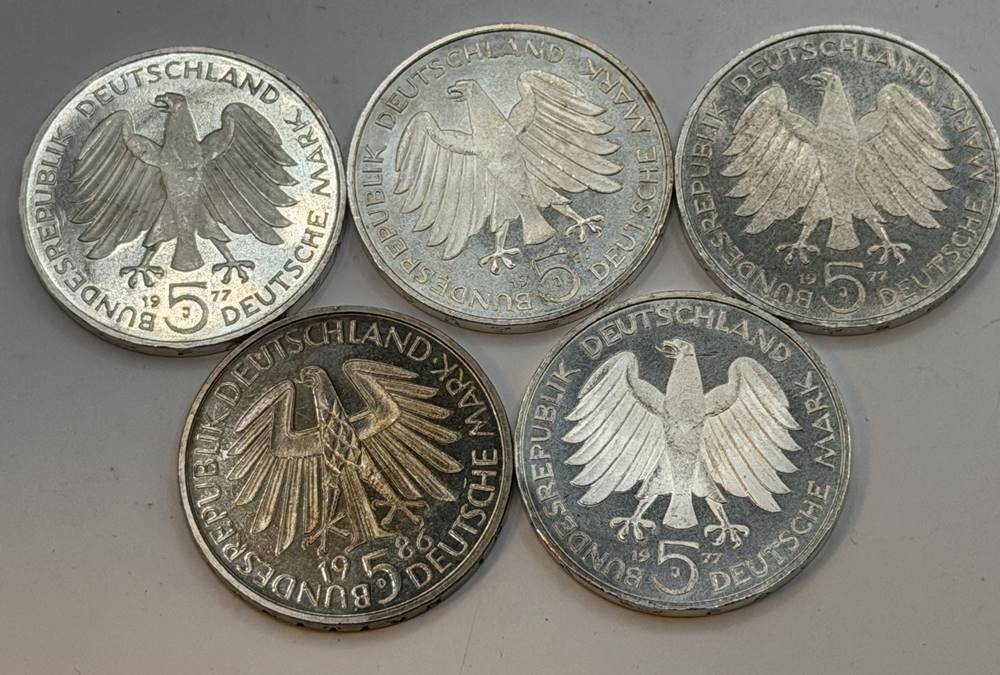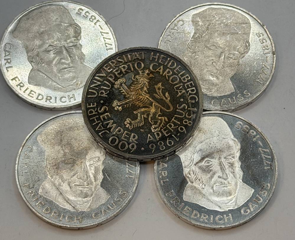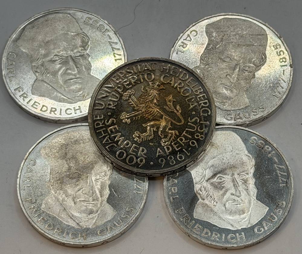 5x 5 DM Sondermünzen BRD, 4x Gauss, 1x Uni Heidelberg [1]