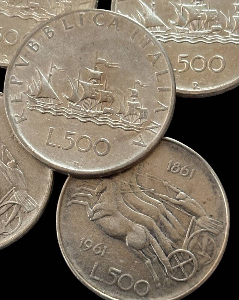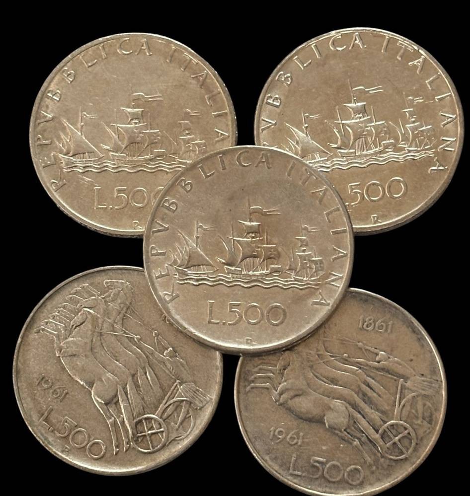 5x 500 Lire Münzen, Italien, Siölber
