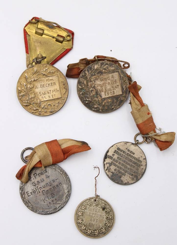 5x div. Medaille um 1900, 4x Radfahren, Altersspuren [1]