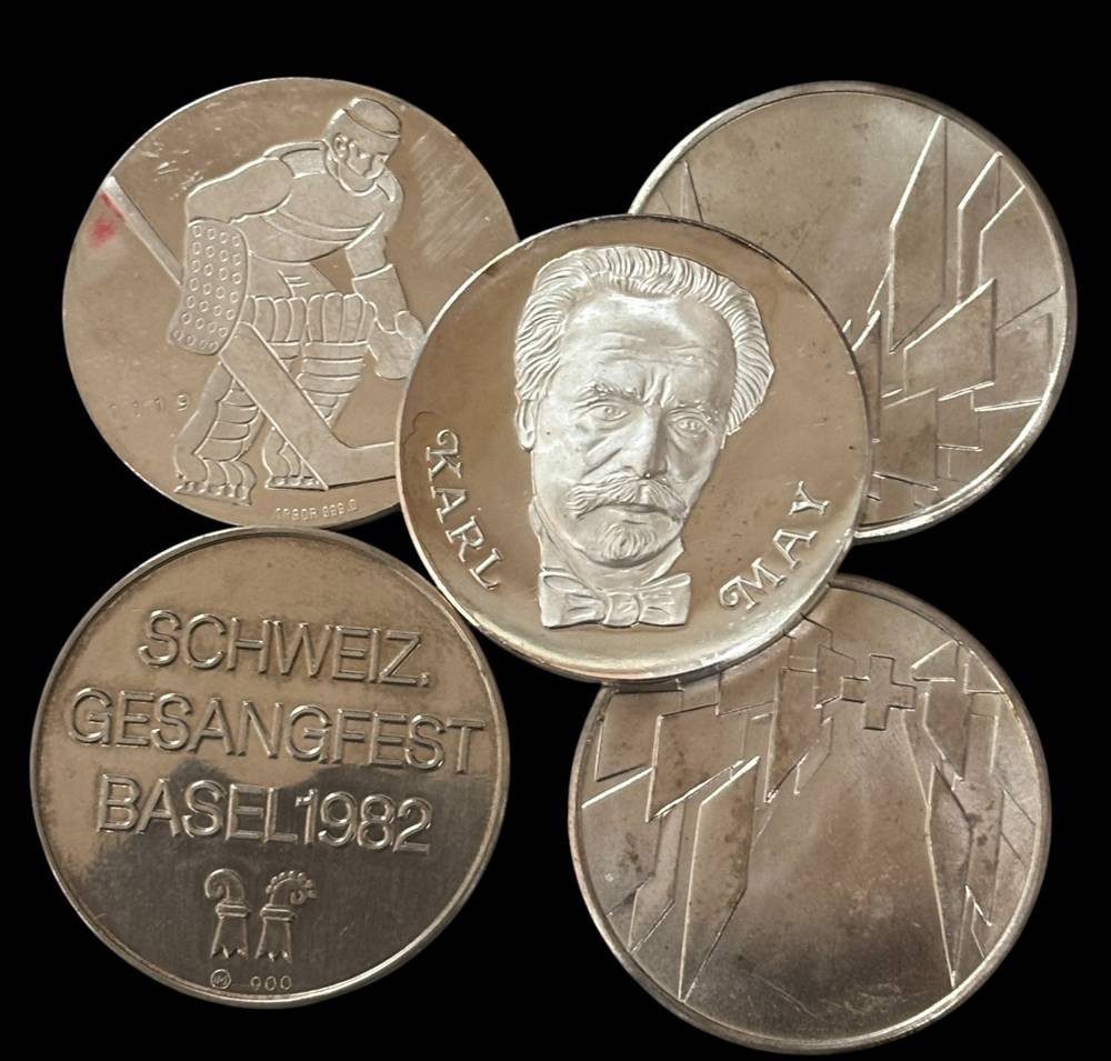 5x Silbermedaillen, Schweiz, zus. 76 gr