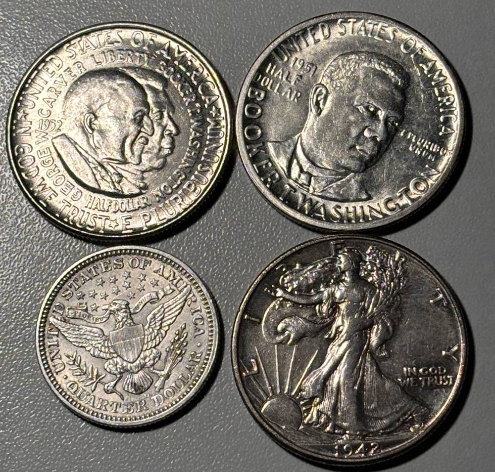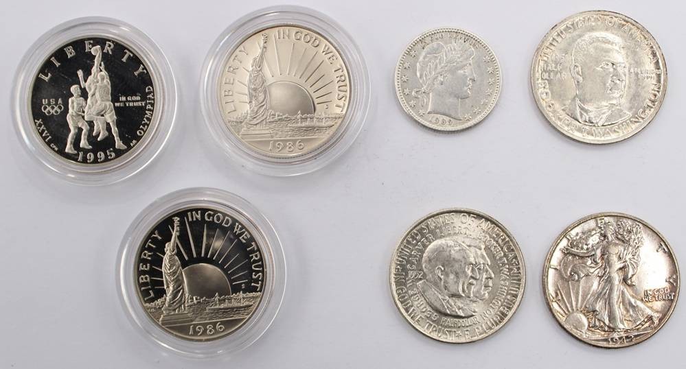 7x div. Münzen USA, hpts. Half Dollar, davon 3x boxed/stempelglanz [1]