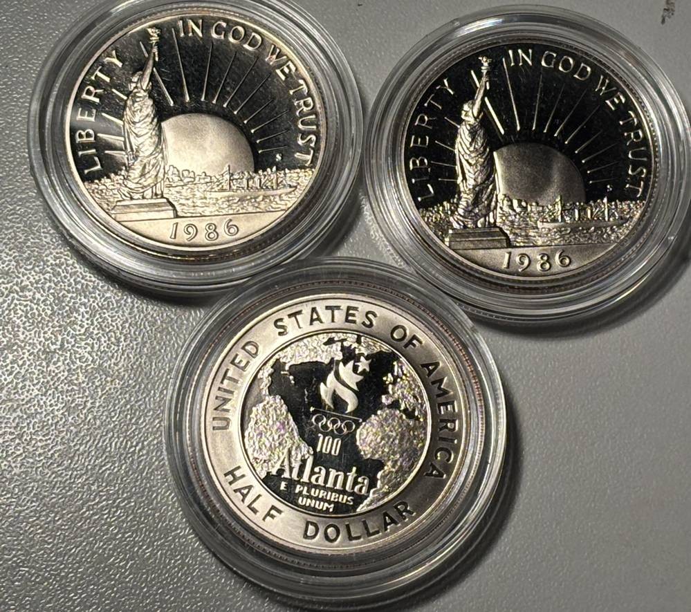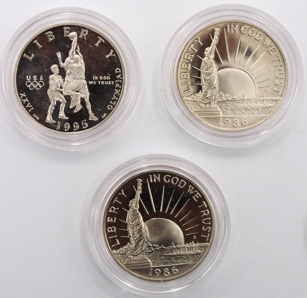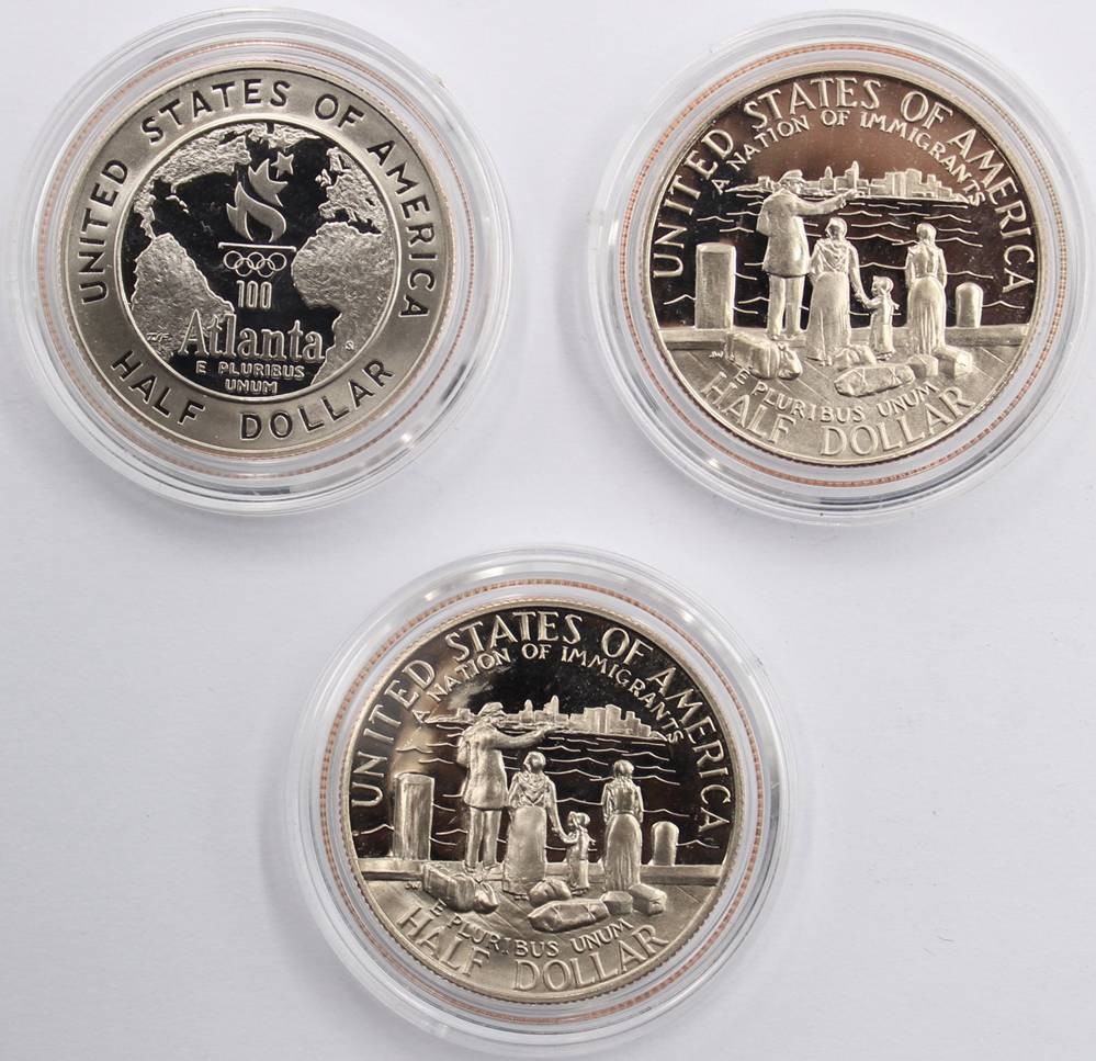 7x div. Münzen USA, hpts. Half Dollar, davon 3x boxed/stempelglanz