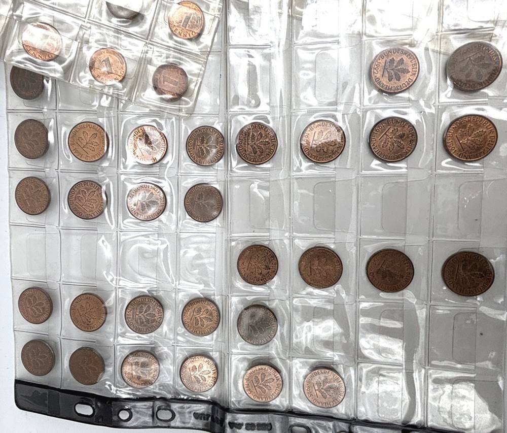 8x Münz-Hüllen voller Kleinmünzen, BRD Pfennige [1]