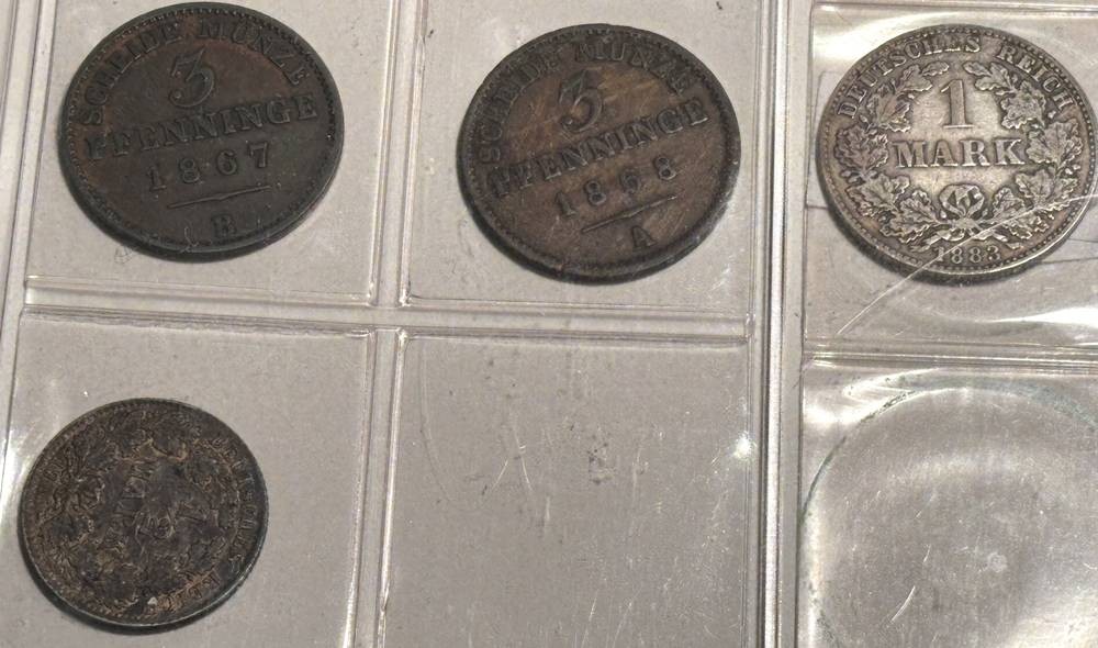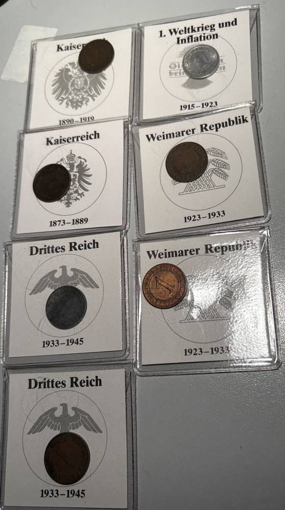 9 Klein- Münzen Preussen, 1x 1 Reichsmark 1939 und 7x 1 Pfennig Münzen [1]