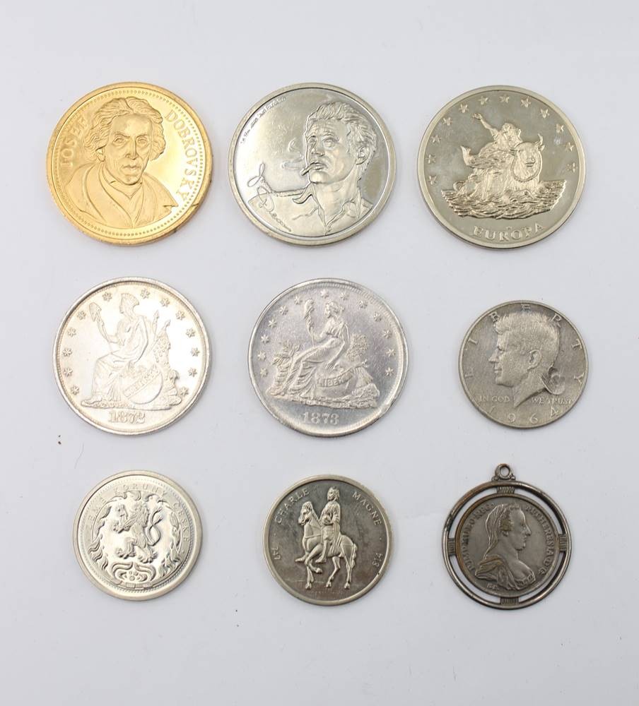 9x div. Medaillen und Münzen, 1x Dollar Replik [1]