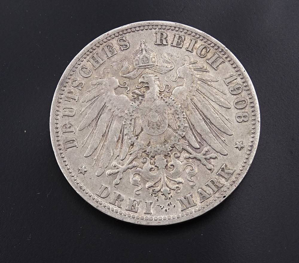 Drei Mark 1908 Deutsches Reich, Wilhelm II König von Württemberg F