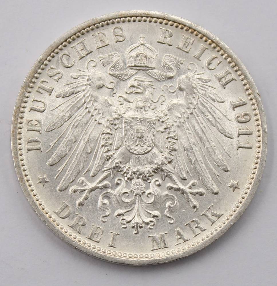 Drei Mark 1911 - Wilhelm II u. Charlotte von Württemberg F, 16,7 Gramm [1]