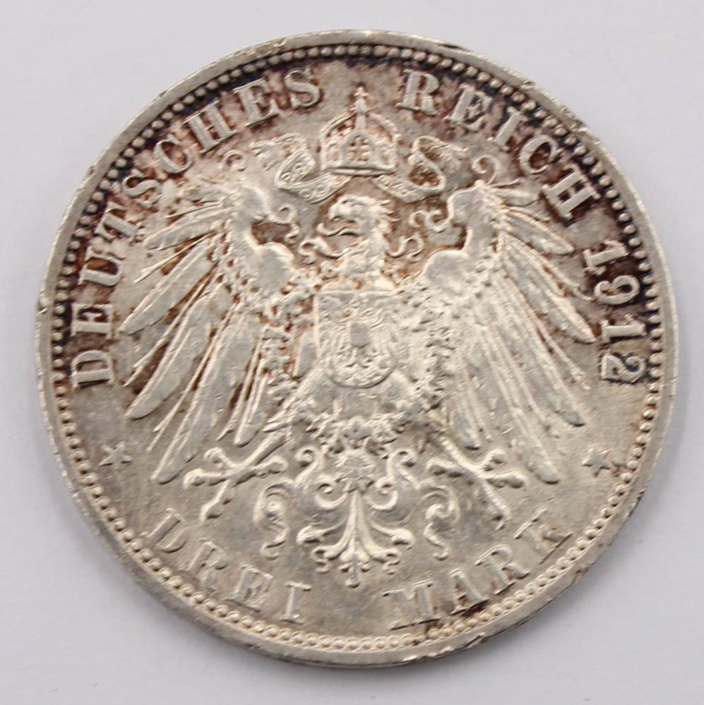 Drei Mark 1912 - Wilhelm II, Silber, Preussen A, 16,7 Gramm [1]