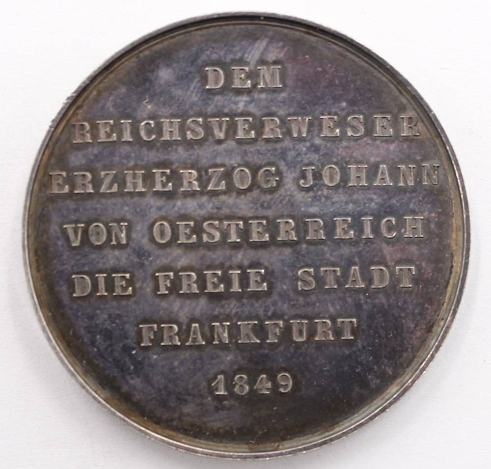 Frankfurt Silbermedaille 1849 Abreise Erzherzog Johanns, sammelwürdige Erhaltung, D-4 cm, 30,2 gr [1]