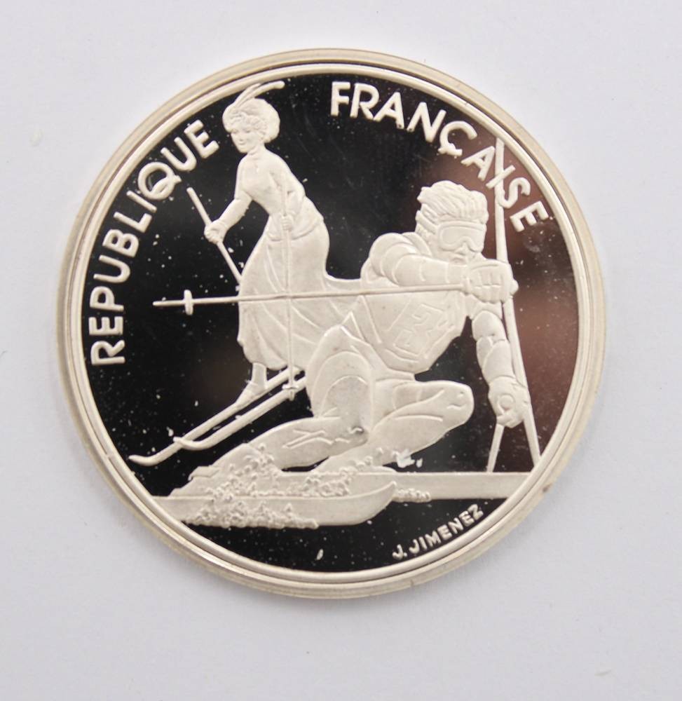 französische Gedenkmünze, 100 Francs, Olympische Winterspiele 1992 in Albertvill, 900er Silber, ca. 22gr., D-3,8cm [1]