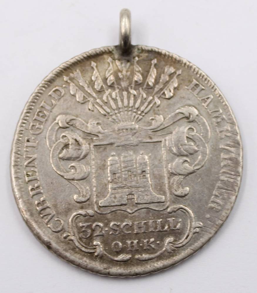 Freie und Hansestadt Hamburg, 32 Schilling 1765, Silber, D-4 cm, ca. 19,1 gr, gehenkelt [1]