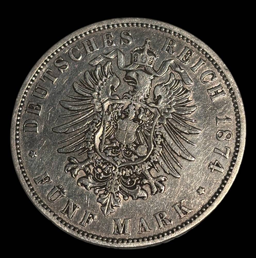 Fünf Mark 1874, Wilhelm I, Deutscher Kaiser, König von Preussen, D-4 cm, 27,6 gr [1]
