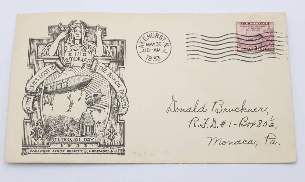 Gedenkbriefumschlag (Memorial Cover) zur Erinnerung an den Absturz des Starrluftschiffs USS Akron im Jahr 1933 [1]