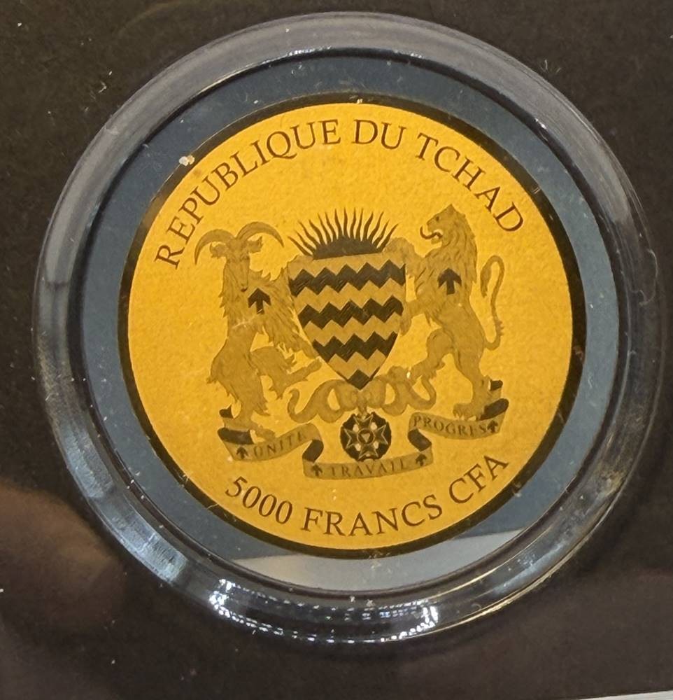 Goldmünze -999- 5000 Francs, Tchad, Kegelrobbe 2022, D-40 mm, 1/200 oz, limitiert mit Zertifikat