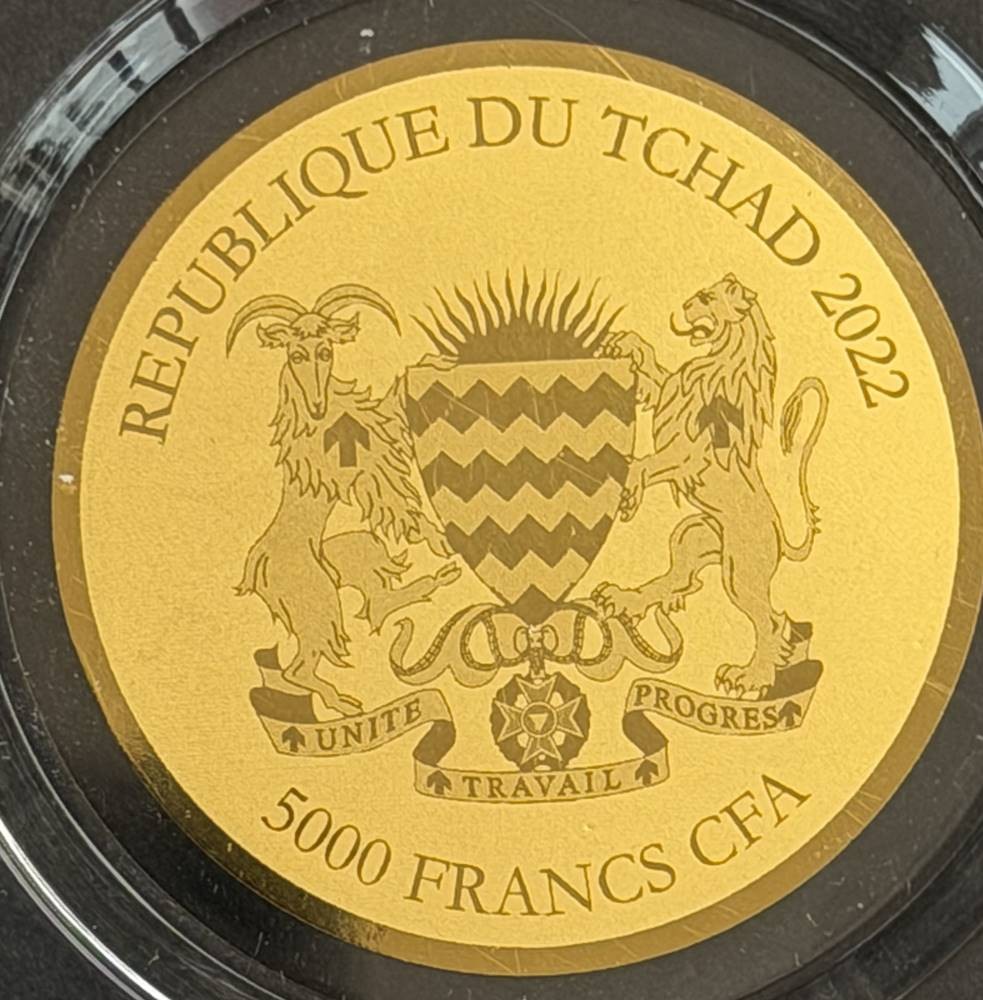 Goldmünze -999- 5000 Francs, Tchad, Maple Leaf 2022, D-40 mm, 1/200 oz, limitiert mit Zertifikat [1]