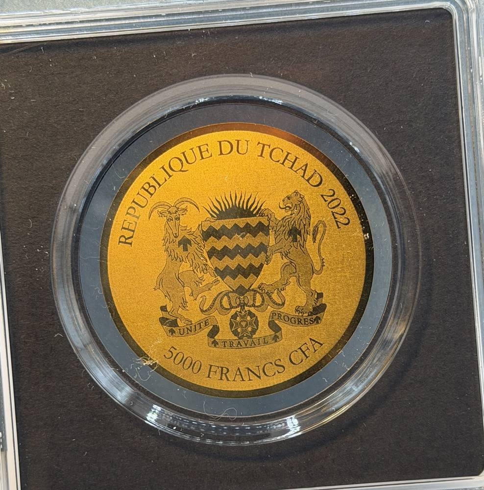 Goldmünze -999- 5000 Francs, Tchad, Springböcke 2022, D-40 mm, 1/200 oz, limitiert mit Zertifikat [1]