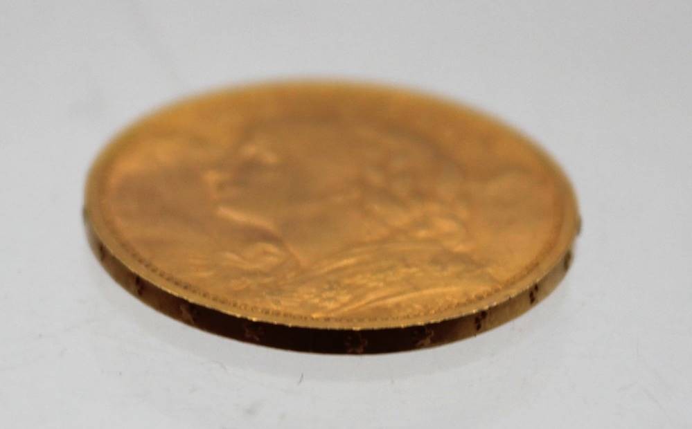 Goldmünzen 20 Franken, Schweiz 1897, sogn. Vreneli, ca. D-2,1cm. [1]