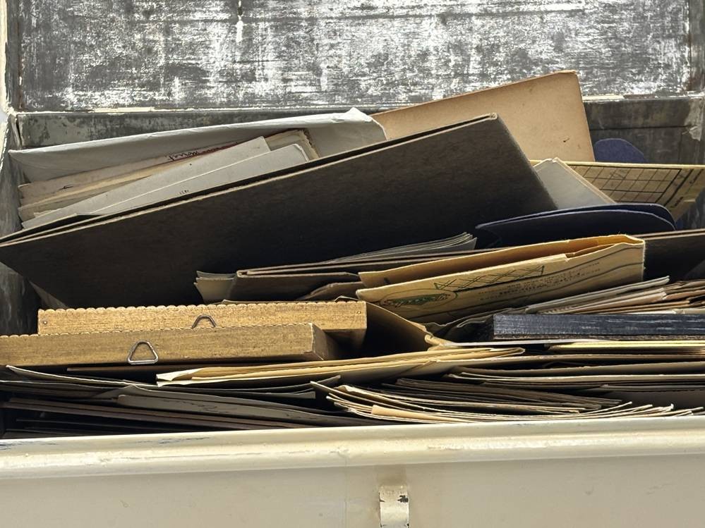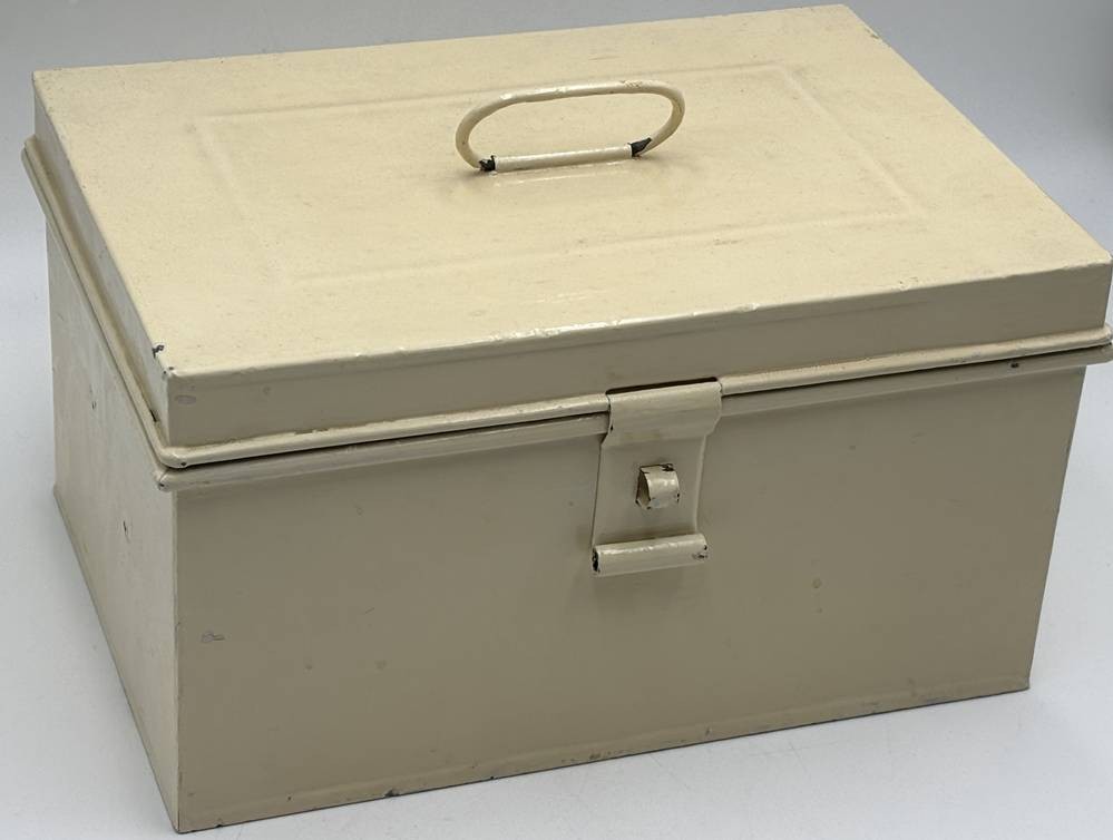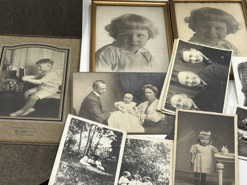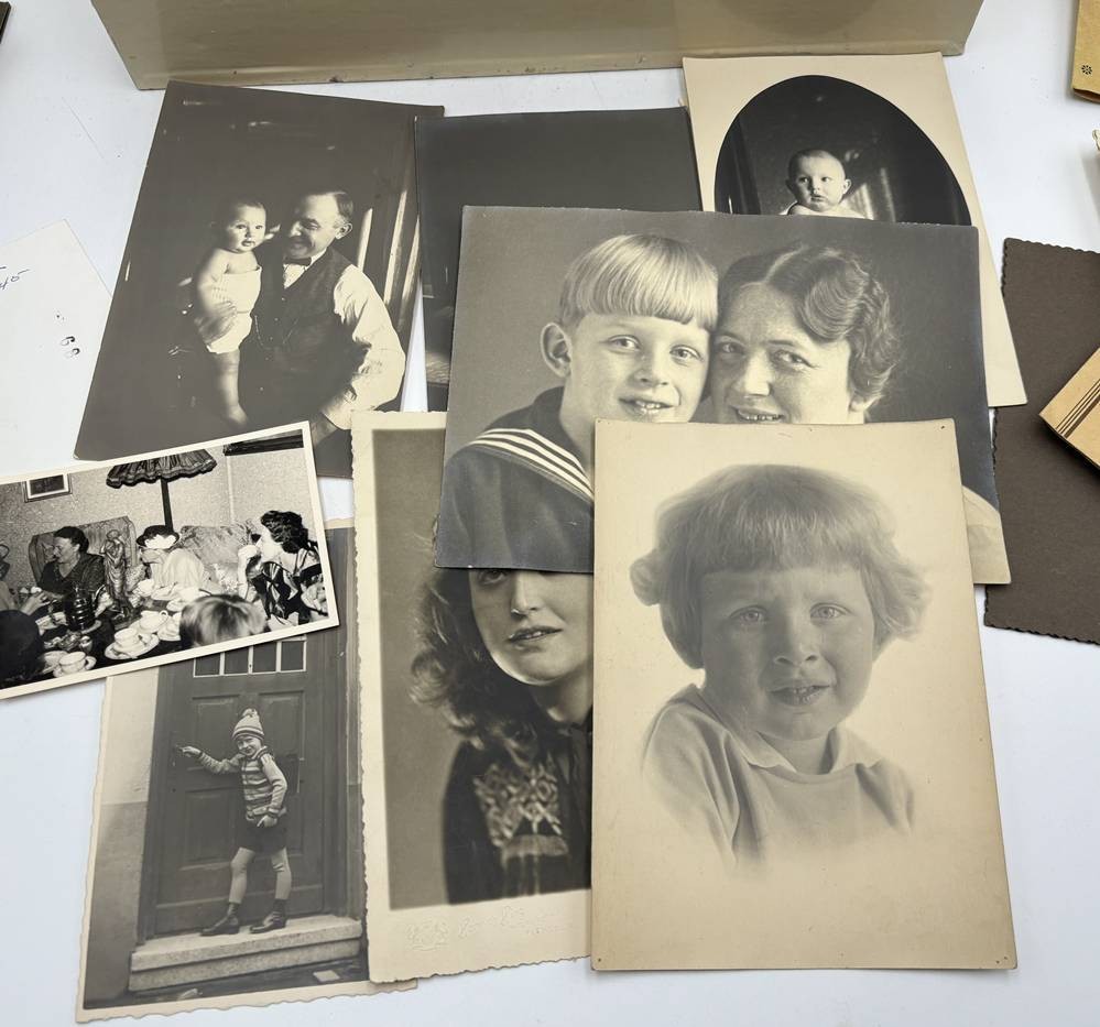 gr. Blechkasten mit Überfall und weit über 100 Fotos einer grossbürgerlichen Familie, auch Negative, von ca. 1900-1950, Kasten H-18 cm, 22x32 cm [1]