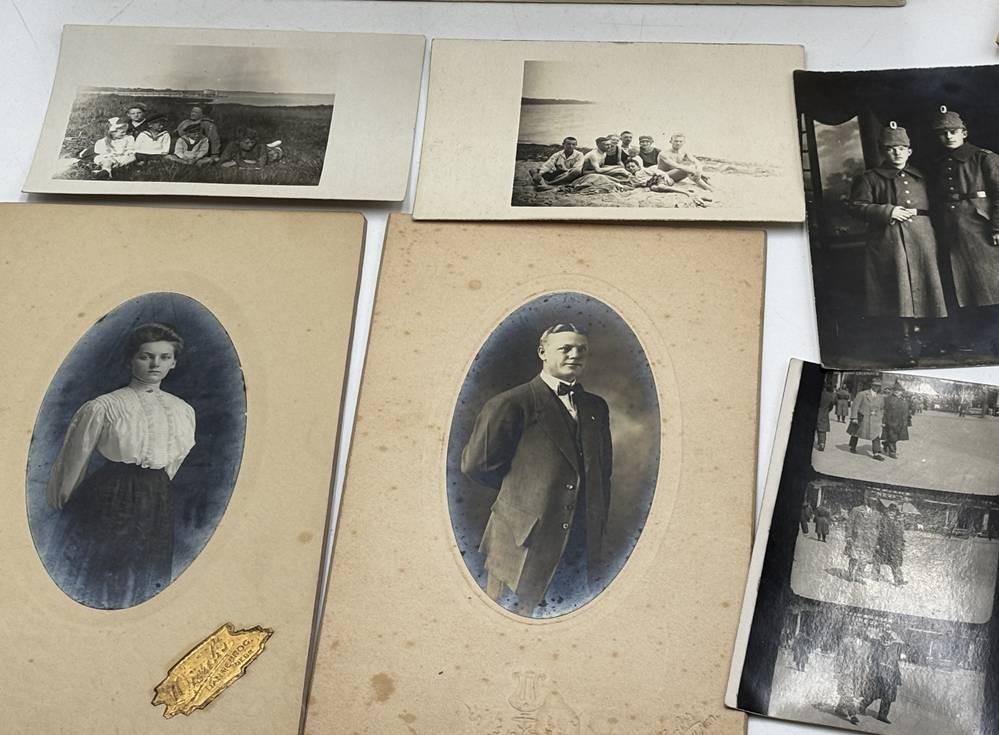 gr. Blechkasten mit Überfall und weit über 100 Fotos einer grossbürgerlichen Familie, auch Negative, von ca. 1900-1950, Kasten H-18 cm, 22x32 cm