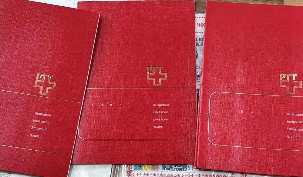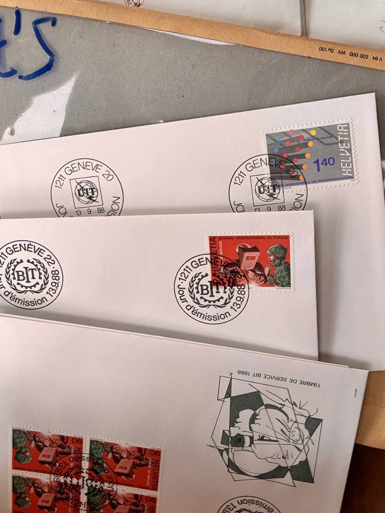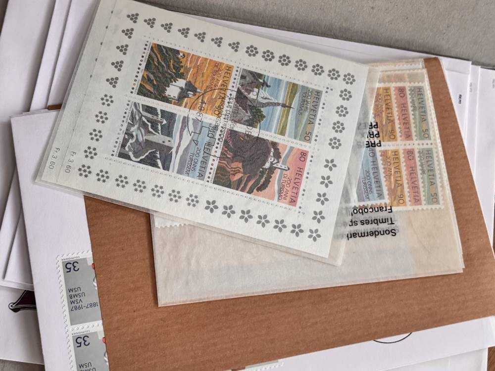 gr. Lot Briefmarken, hpts. Schweiz, 4x PTT Alben orig. voll, sowie viele Ersttagsbriefe, Sonderstempel etc., tw. voll mit Marken, Grossteil Schweiz postfrisch [1]