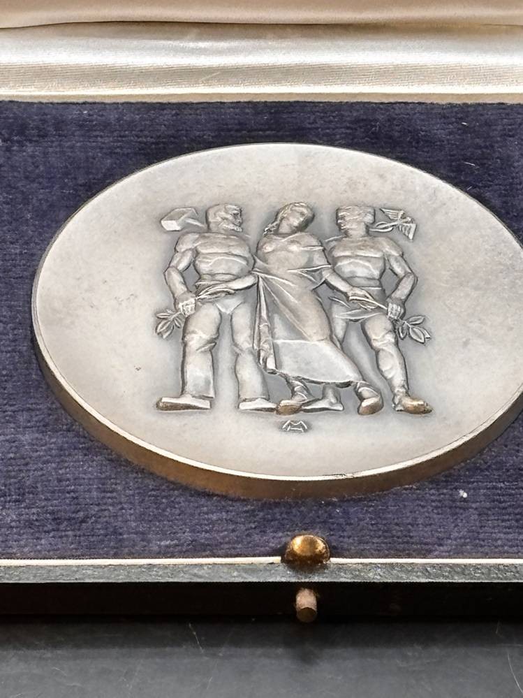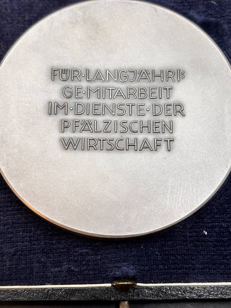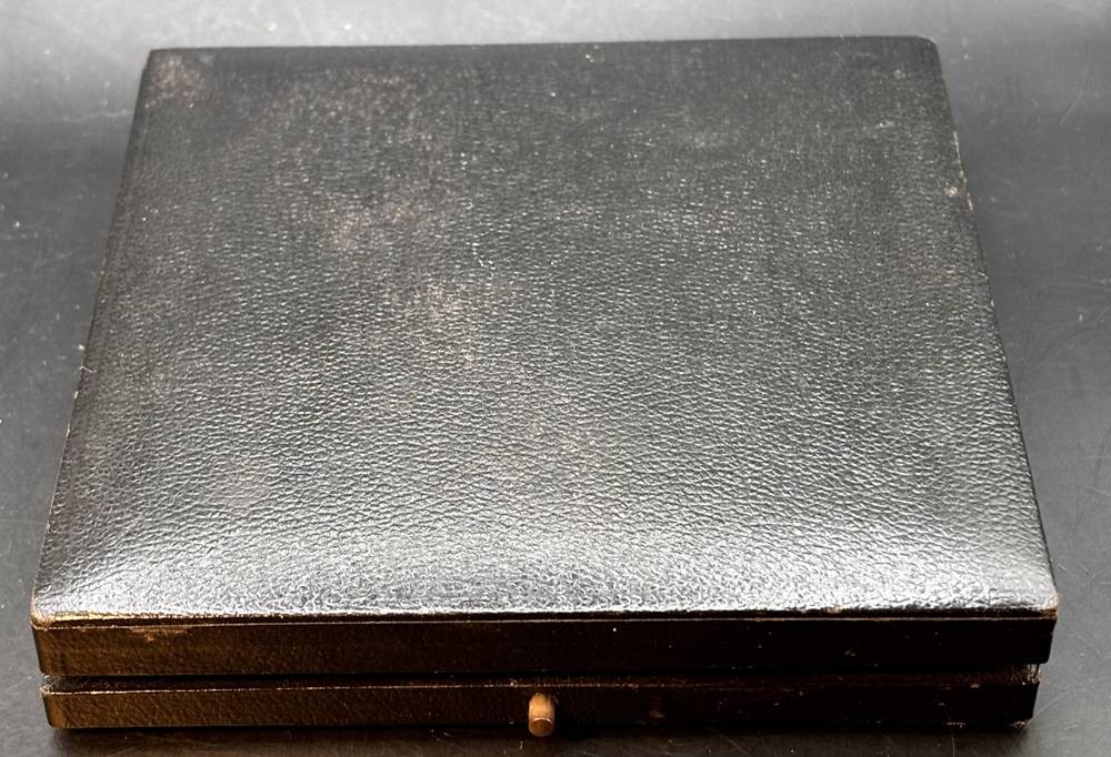 gr. Zinnplakette in Etui, Entw. HM, D-8 cm, Etui ca. 12x12 cm [1]