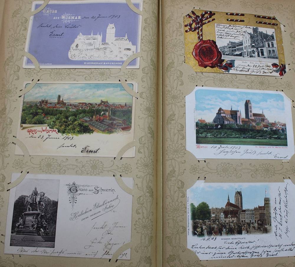 Jugendstil-Postkartenalbum, 289 div. Karten, überwiegend gelaufen, Album mit Altersspuren [1]