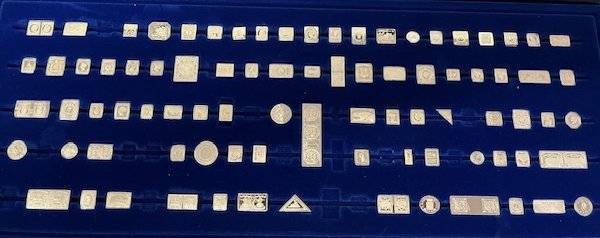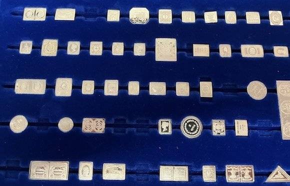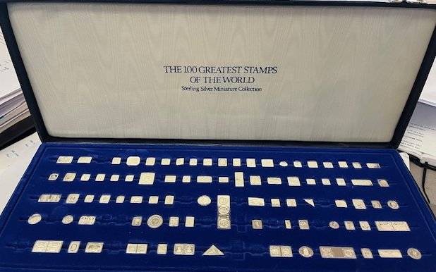 Kasten mit 85 x Silber-925- Briefmarken, die berühmtesten der Welt