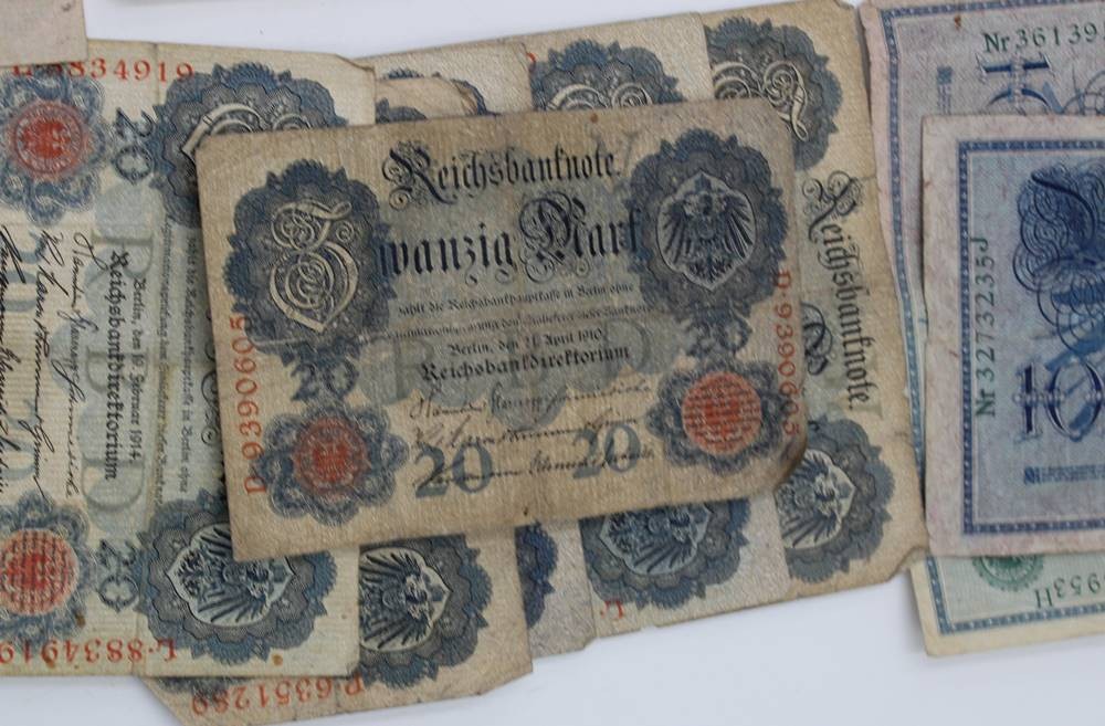 kl. Konvolut div. Banknoten, Deutsches Reich, Altersspuren [1]