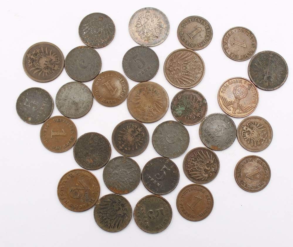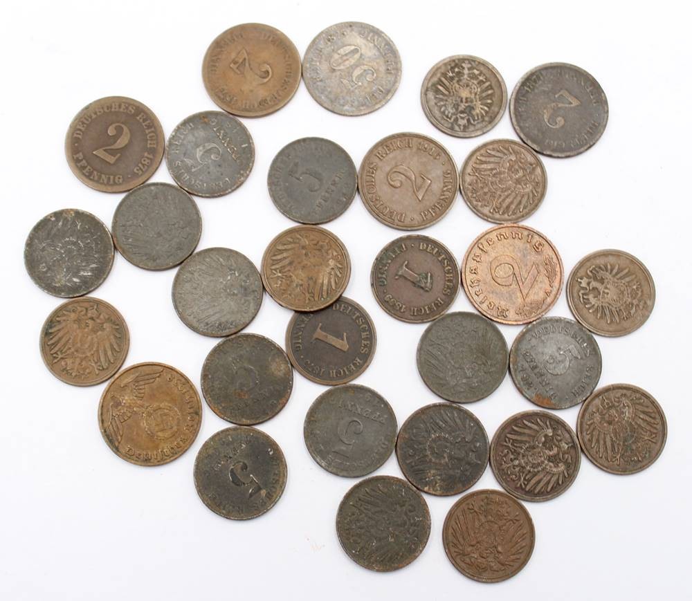 kl. Lot diverser Reichspfennig-Münzen, von 1 bis 50 Pfennig [1]