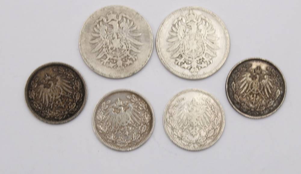 kl. lot Münzen - 1/2 - 1 Mark, Silber, 21,7 Gramm [1]