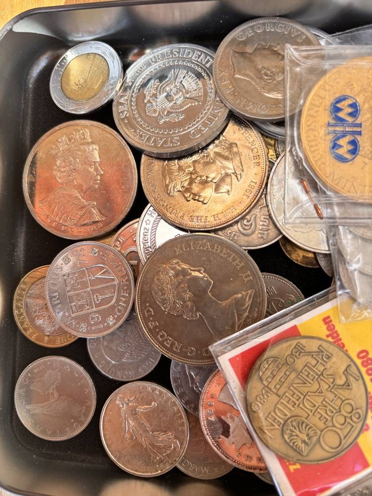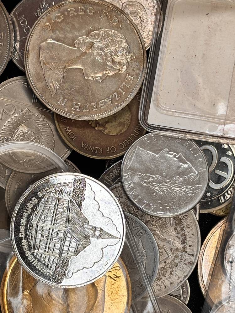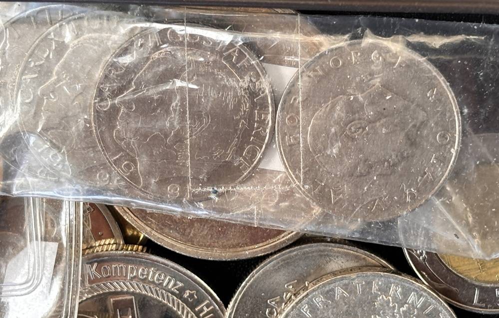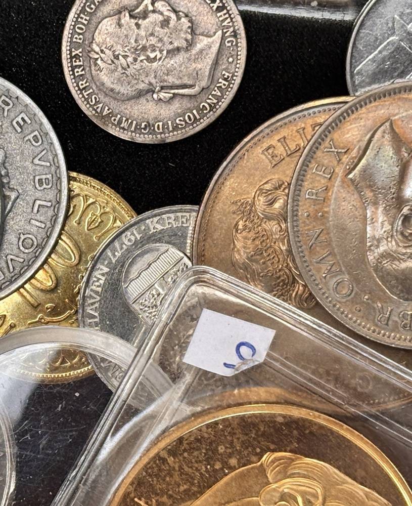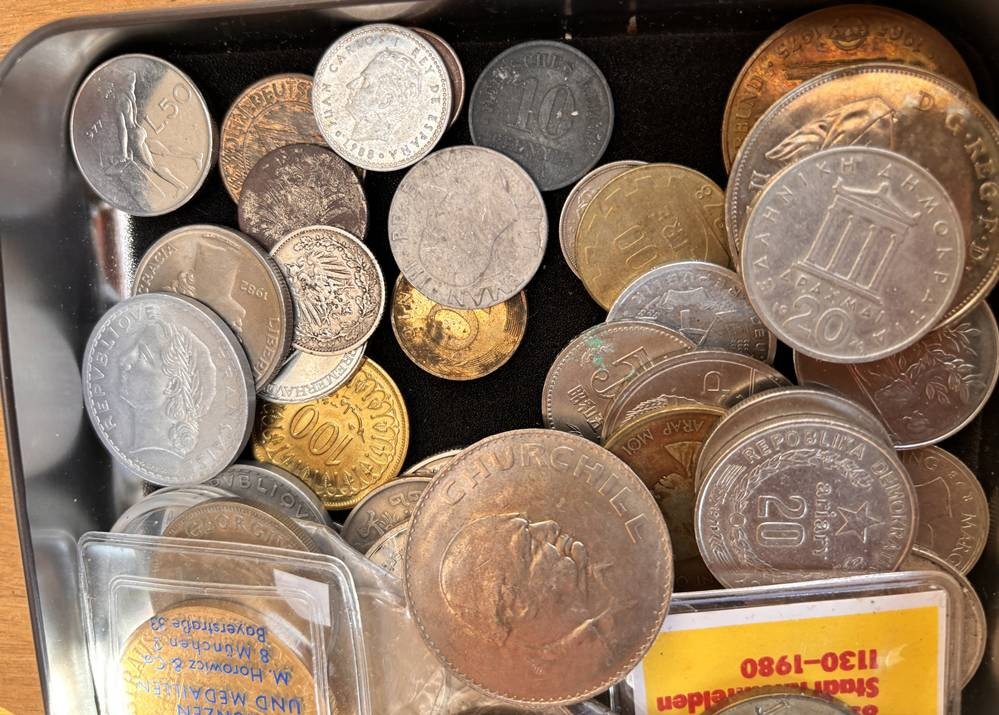 kl. Tüte voller div. Münzen und Medaillen, unsortiert und ungesichtet, wohl einige Silber? ca 60 Teile, 686 gr. [1]
