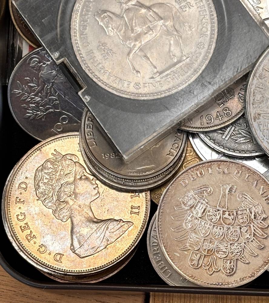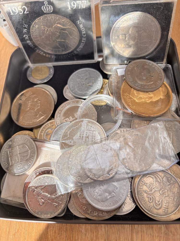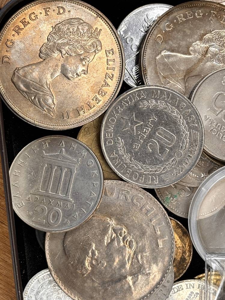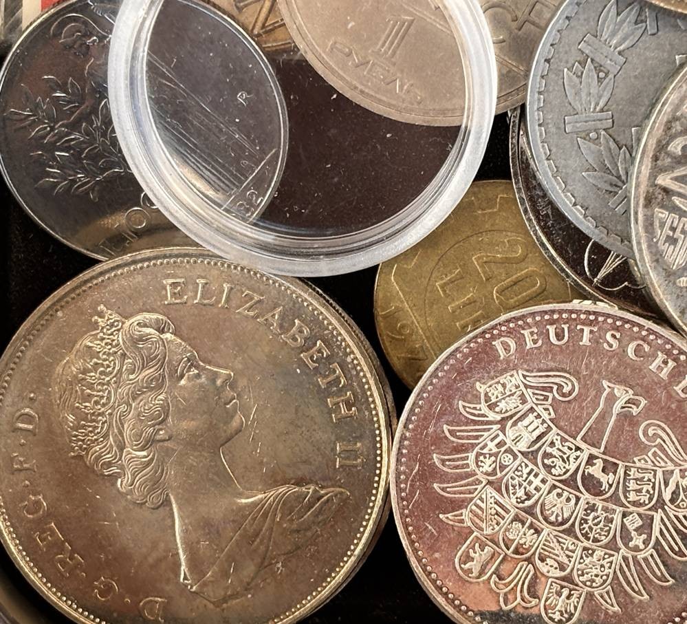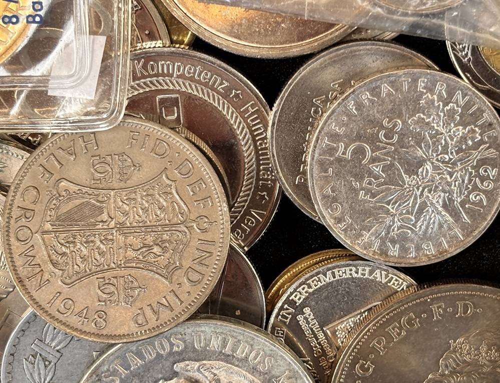 kl. Tüte voller div. Münzen und Medaillen, unsortiert und ungesichtet, wohl einige Silber? ca 60 Teile, 686 gr. [1]