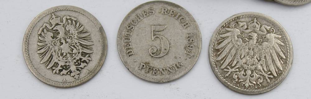 Konvolut 5 Pfennig Münzen, Deutsches Reich ab ca. 1874 [1]