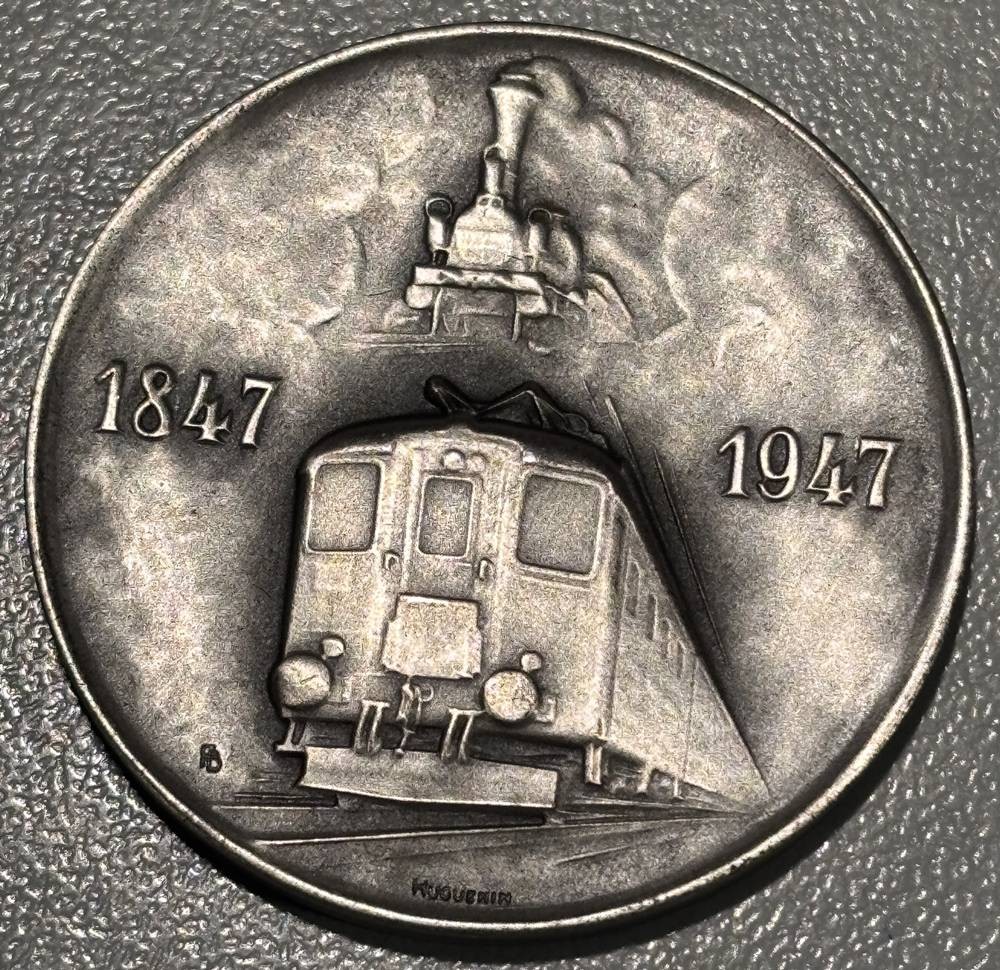 Medaille 100 J. Schweizer Eisenbahnen" 1947, Silber-900-, D-3,5 cm, 14,4 gr [1]