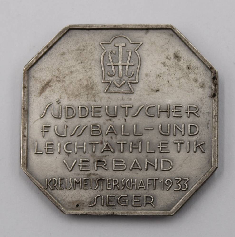 Medaille, Süddeutscher Fussball-u. Leichtathletikverband Kreismeisterschaft 1933 Sieger, ca. 3,5 x 3,5cm [1]