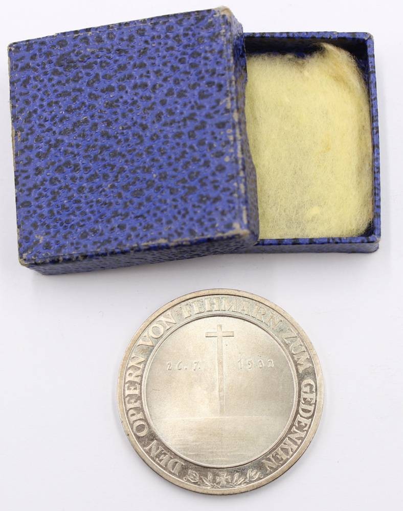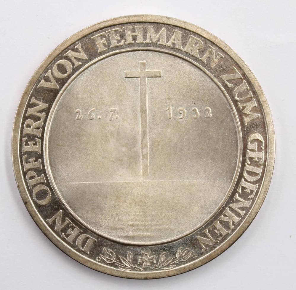 Medaille "Volksspende 1932" Den Opfern von Fehmarn...,orig. Schachtel, Untergang des Segelschulschiffs Niobe - Silber-Gedenkprägung