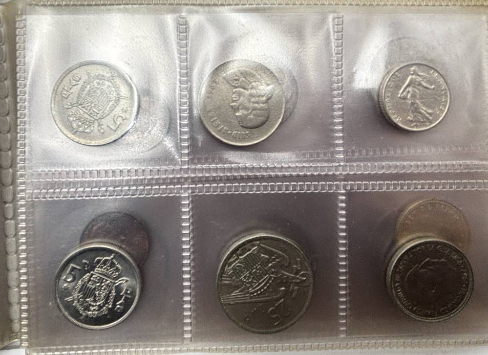 Mini Münzalbum mit 38 div. Münzen, auch Silber
