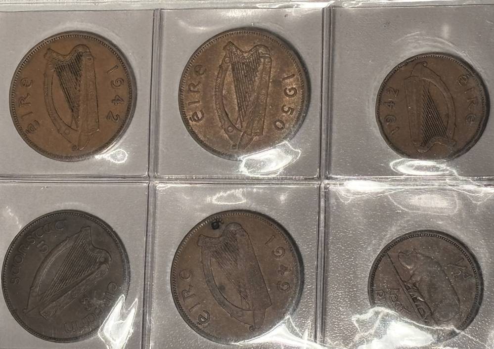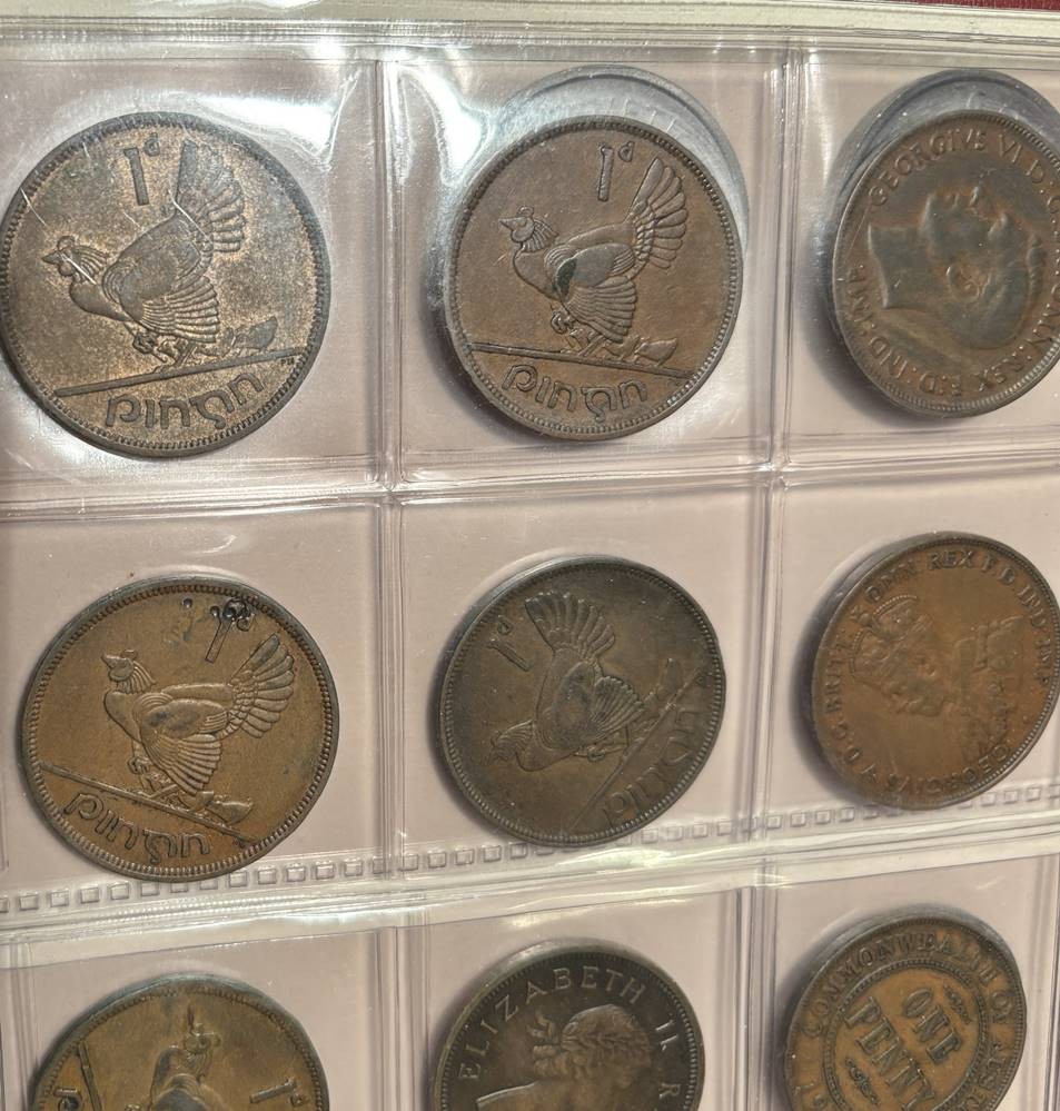 Münzblatt mit 20 Münzen, hpts. 1 Penny, England, Irland, Australien, Süd-Afrika
