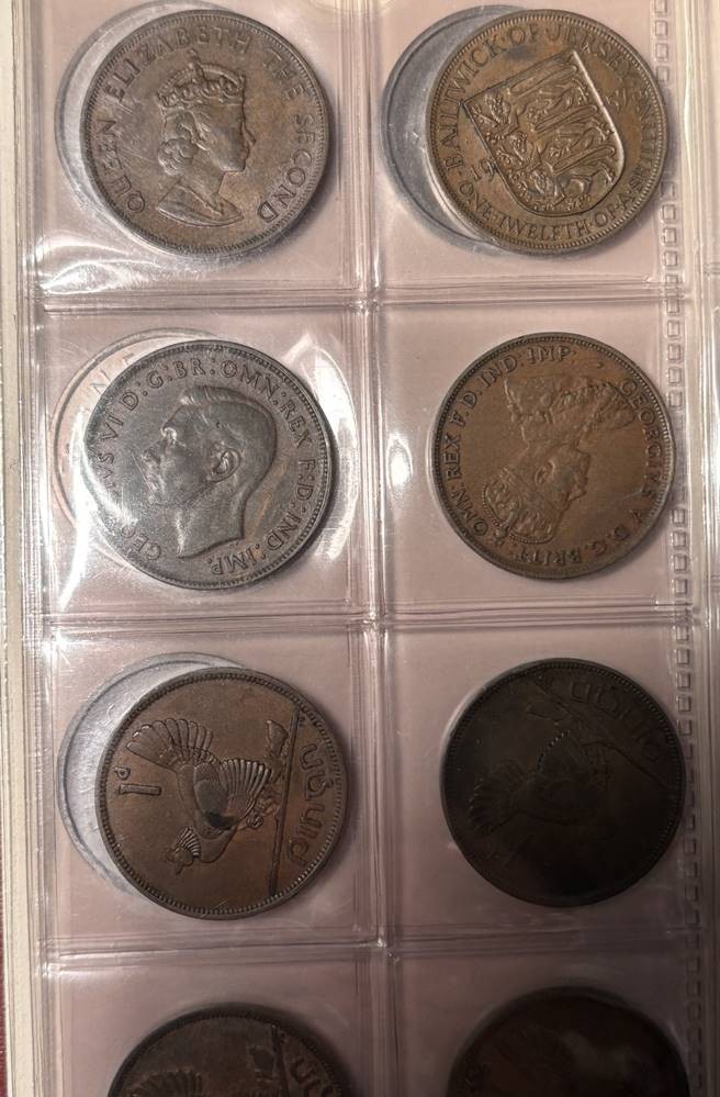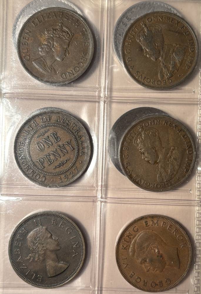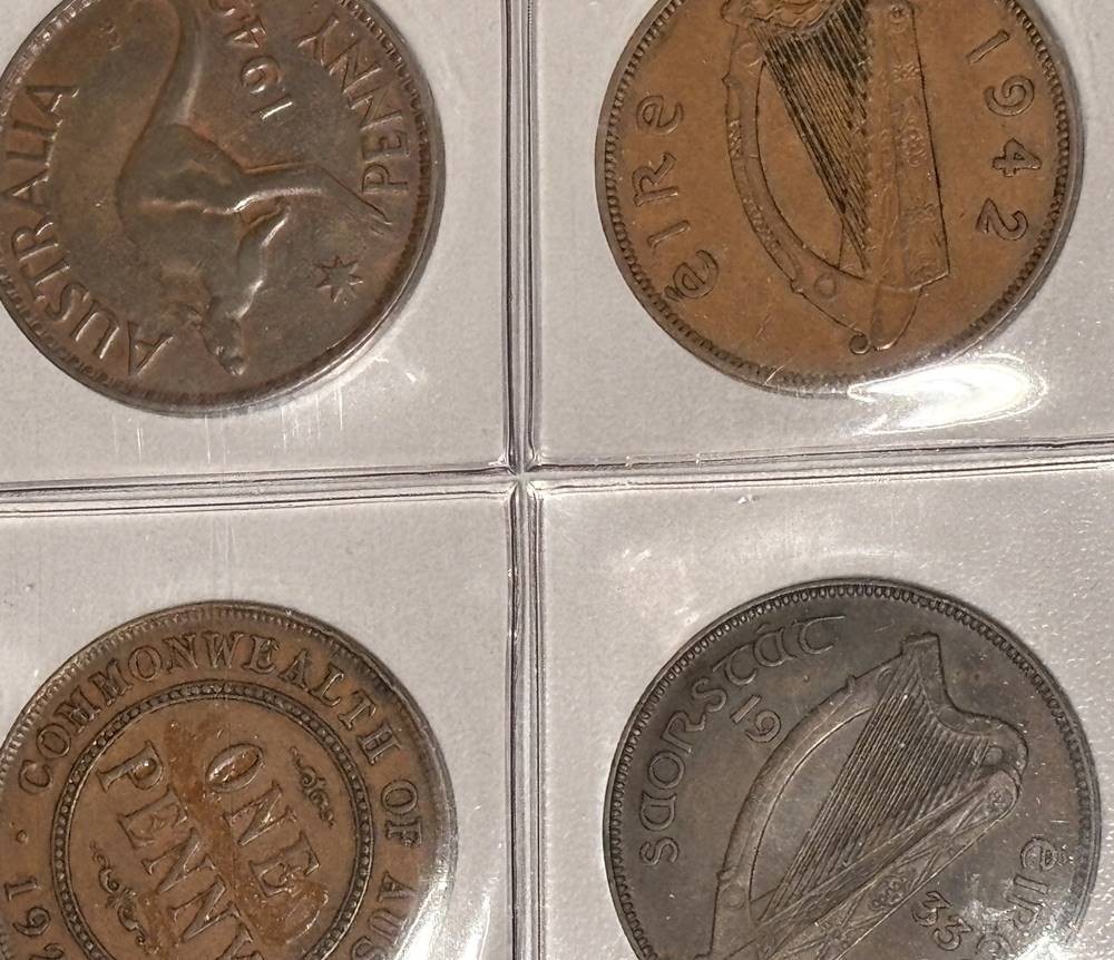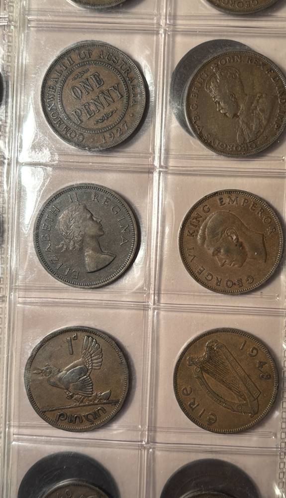 Münzblatt mit 20 Münzen, hpts. 1 Penny, England, Irland, Australien, Süd-Afrika [1]