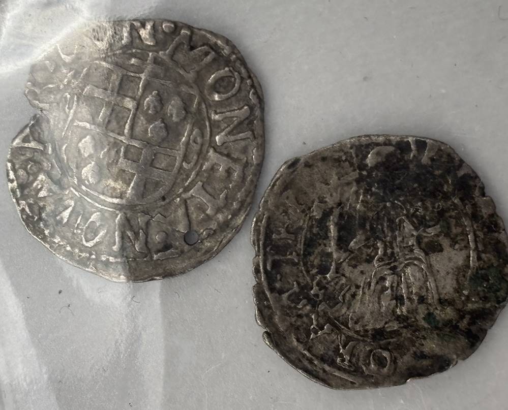 Münzblatt mit 7 antiken Münzen, Bronze und 2x Silber? [1]