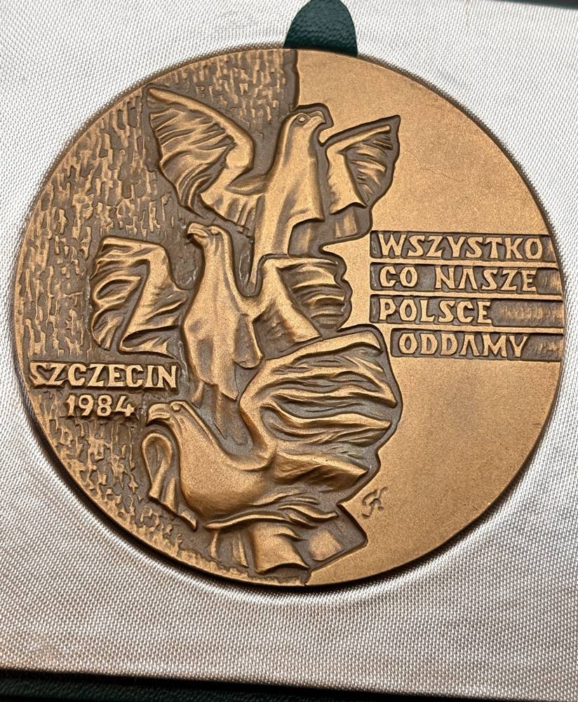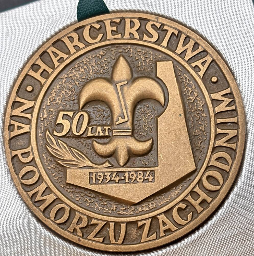 polnische Bronze Gedenkmedaille in Etui, 1984, 50-jährige Bestehen (1934-1984) der Pfadfinderbewegung (Harcerstwo) in Westpommern, D-7 cm [1]